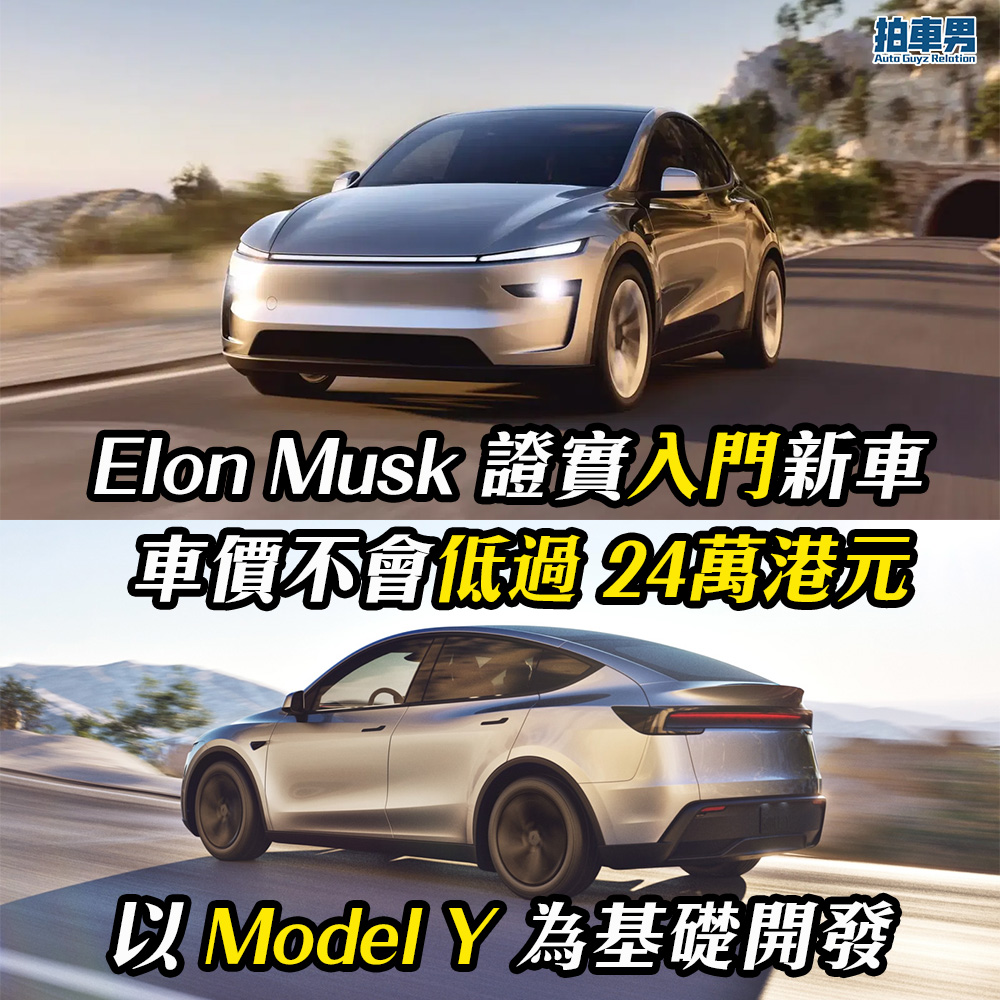 這款外界暫稱為 Model Q 的新車,Elon Musk 明確指出,這款平價新車將會以 Model Y 為基底而成。